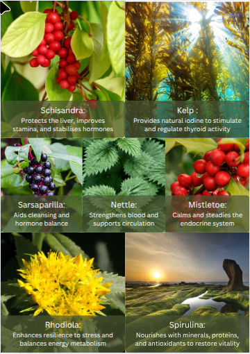 Restore thyroid function with Thyroid Balance — your botanical solution for supporting endocrine health, regulating metabolism, nourishing the blood, and enhancing overall vitality.